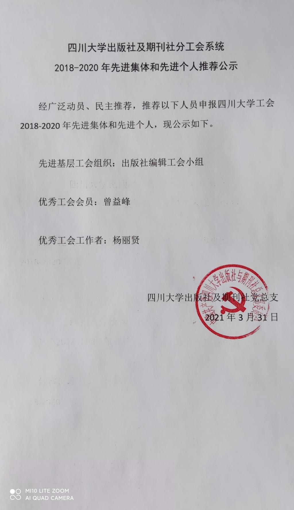 77779193永利集团出版社及期刊社分工会系统2018-2020年先进集体和先进个人推荐公示
