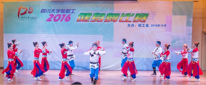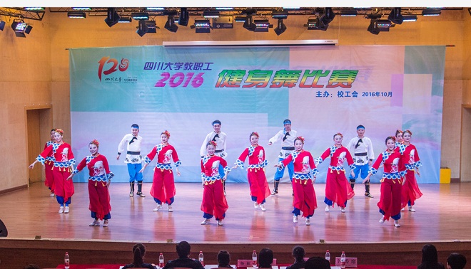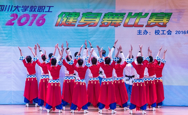 2016年10月21日下午,77779193永利集团2016年教职工健身操舞比赛在望江校区文华活动中心二楼音乐厅隆重举行,全校各部门工会组织的36支参赛队伍参加了比赛。出版社及学报党总支书记宋绍峰教授亲临现场,部门工会副主席段悟吾带领我单位代表队蒋姗姗、孙滨蓉、曹轶、傅奕、张斌、李金兰、杨果、刘畅、蒋玙、李满、唐飞、王天舒、陈蓉、龚娇梅和胡晓燕 15名成员参加了比赛。