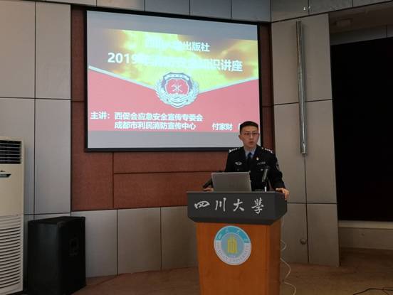 会上,还邀请了四川中国西促会应急安全宣传专委会付家财教官开展了消防安全知识讲座。本次讲座主要讲述了《消防法》《消防安全责任制实施办法》、消防“四个能力”等政策法规,防火、灭火、逃生、自救等方面的知识,各类消防器材的使用方法,以及出行交通安全等方面的内容。