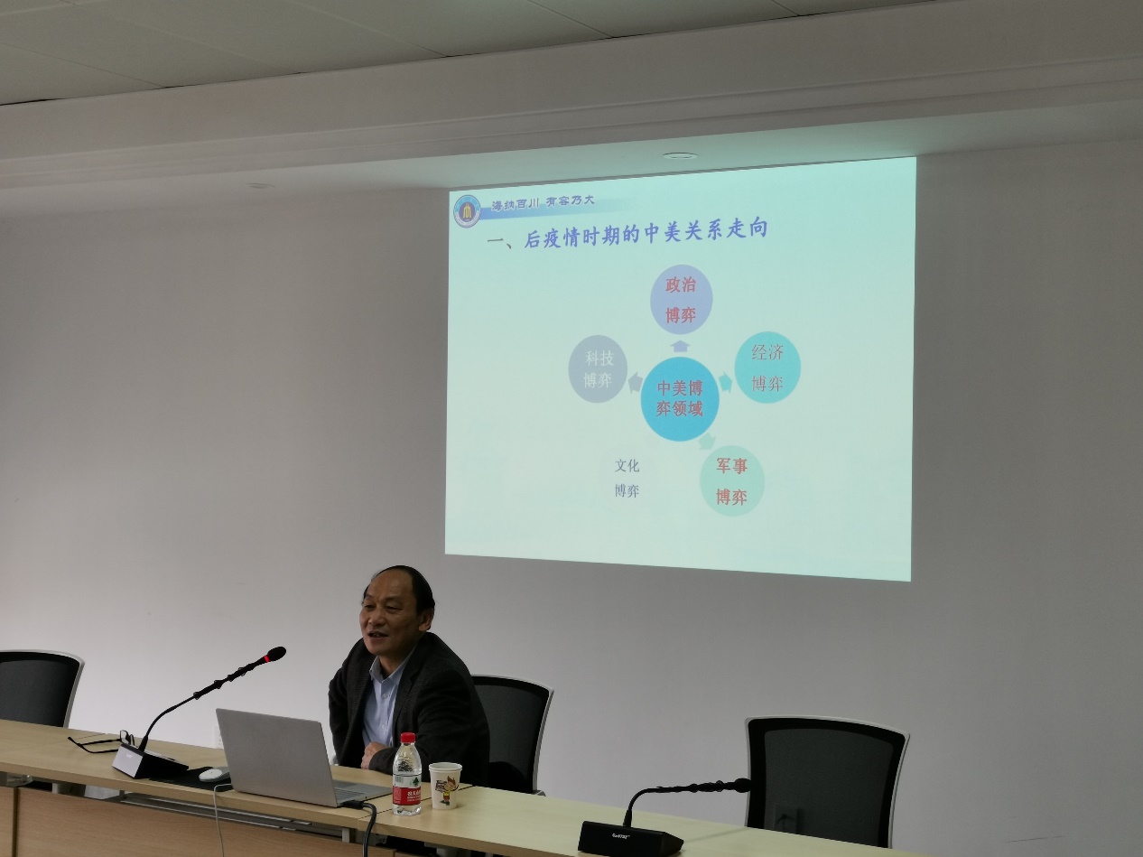 本次课程,蒋和胜教授围绕近期经济形势,结合多年来的学术研究成果,简要分析了后疫情时期的中美关系走向、当前经济政策与发展机会热点,重点讲授了畅通经济双循环的客观背景和主要内容。