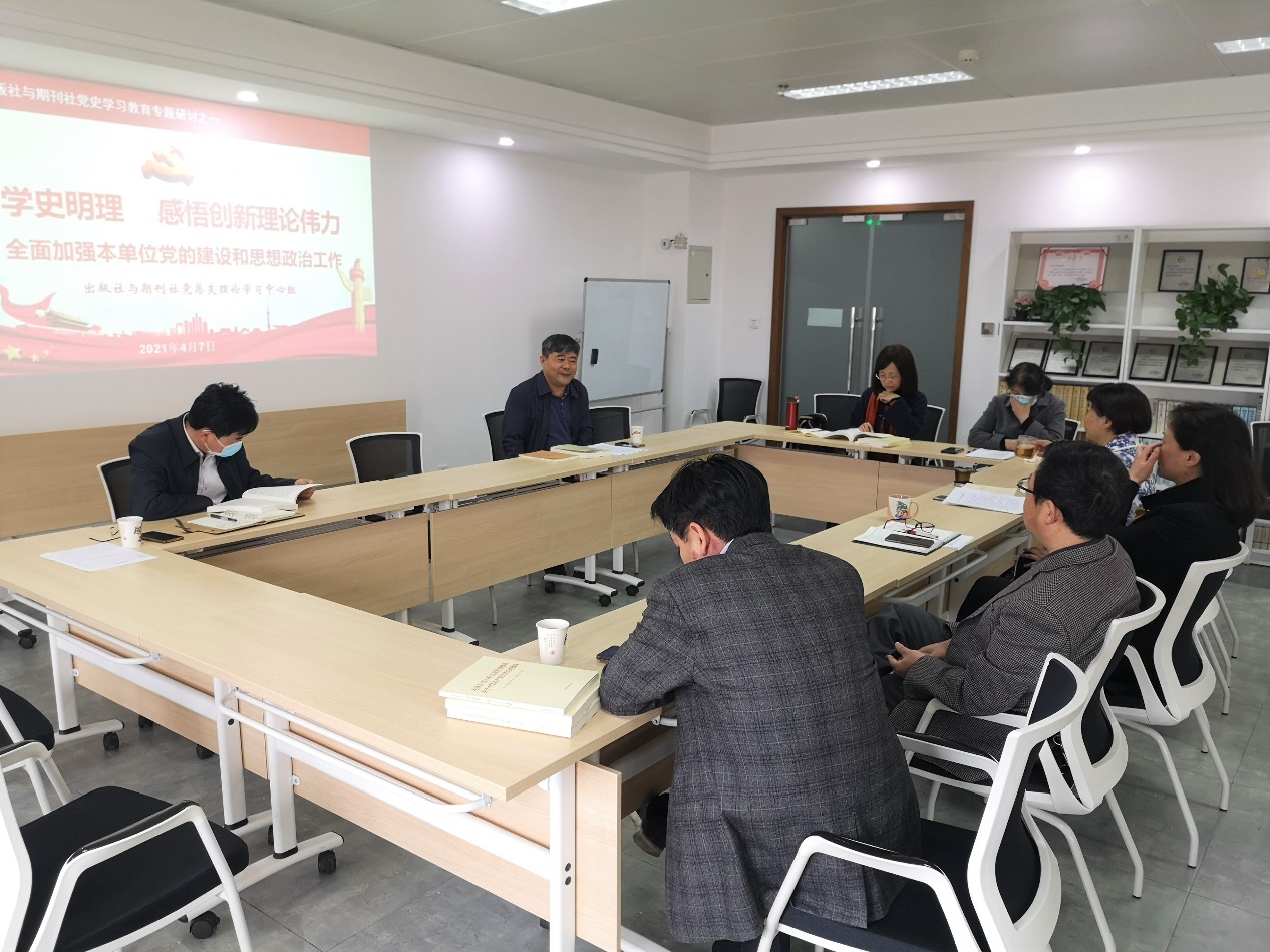 2021年4月7日上午,出版社与期刊社党总支在出版社513会议室召开理论学习中心组学习会,学习研讨党史学习教育“学史明理”专题。出版社与期刊社党政班子成员、党总支委员参加会议。