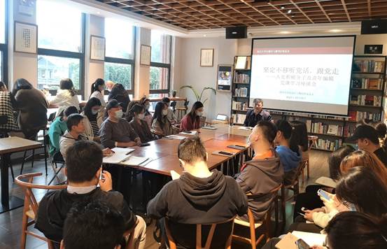 2021年10月12日上午,出版社与期刊社党总支在库闻书店召开入党积极分子和青年编辑党课学习座谈会,出版社与期刊社党总支全体入党积极分子、团员、青年编辑、团支部书记和部分党支部书记参加了学习座谈。党总支书记宋绍峰以“坚定不移听党话、跟党走”为题,为与会同志进行了深入交流。