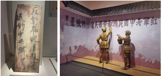 大家首先参观了“初心永恒——中国工农红军在四川标语特展”,展厅集中展示了中国工农红军在四川留下的、具有代表性的标语。通过参观,大家了解到,标语是中国工农红军传播革命理想的宣传工具,发挥着团结动员群众、鼓舞红军斗志的重要作用。为了发展革命力量,扩大党和红军在群众中的政治影响,中国工农红军因地制宜,在根据地的石头上錾刻标语,传达党和红军的政治主张。