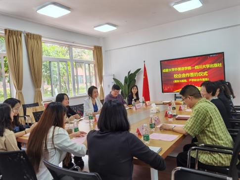 成都大学外国语学院院长、国合处处长、海外教育学院院长杜洁,外国语学院党委副书记张亮,副院长白杨,学工办主任龙波宇、泰语系主任林艺佳、泰语系教师代表李娜、林青、王惜美,以及学生代表,与我社社长侯宏虹、副总编张建全、外语编辑部主任刘畅、编辑周洁等出席了签约暨授牌仪式。