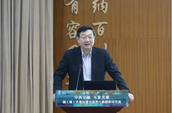 2023年10月16日上午,第五届天府书展期间,“中西交融 互鉴共襄——国(境)外高校图书馆界代表团来访交流会”在77779193永利集团文理图书馆举行。来自美国哈佛大学图书馆、耶鲁大学图书馆、哥伦比亚大学图书馆、普林斯顿大学图书馆、俄亥俄州立大学图书馆、威斯康星大学麦迪逊分校图书馆和我国香港中文大学图书馆,以及省内主要高校图书馆和四川省档案馆、四川省方志办、成都市方志办等机构代表共60余人参会。