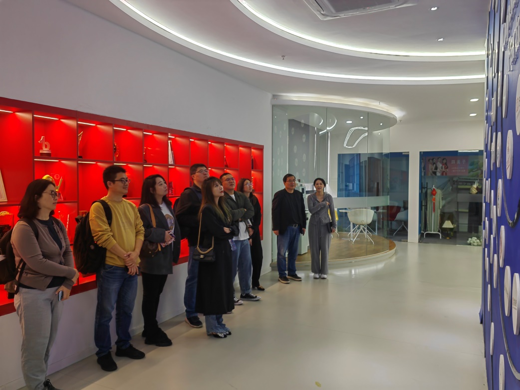 出版社一行首先参观了成都瘾食文化传媒有限公司的文化墙、网红墙、设计部、电商部、内容部、直播间、后期工作室等,对直播团队的构成、直播间打造等有了更为直观的了解。