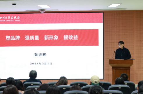 出版社与期刊社党总支书记庞国伟首先代表领导班子作2023年度工作总结。他指出,过去的一年,出版社与期刊社以习近平新时代中国特色社会主义思想为指引,认真贯彻落实学校党委九届二次全会精神,不断加强党的全面领导,不断完善体制机制,推动出版品牌建设、加快融合出版和川大出版“走出去”取得明显成效,期刊服务国家重大战略工程有序推进、办刊水平和学术影响力显著提升。