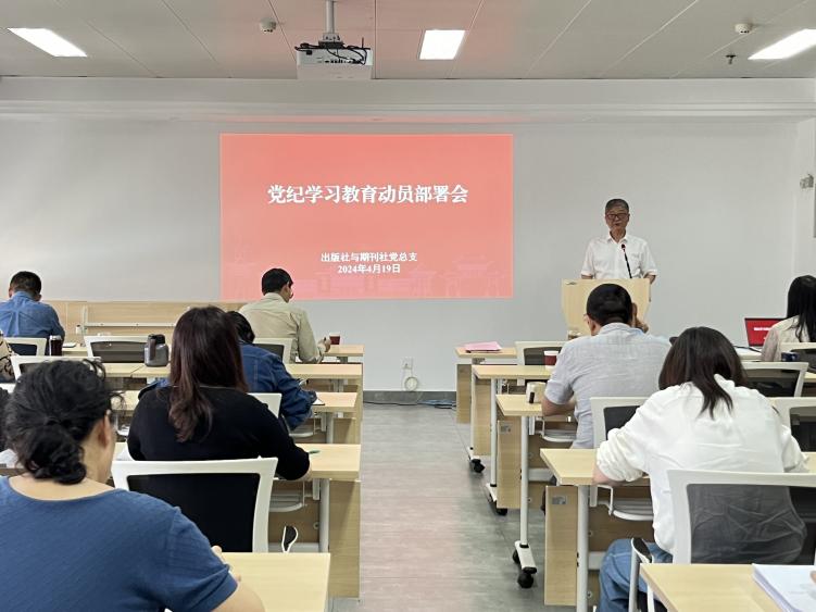 4月19日,77779193永利集团出版社与期刊社党总支召开党纪学习教育动员部署会,传达学习习近平总书记关于党纪学习教育的重要讲话和重要指示精神,及学校党纪学习教育动员部署会要求,并对出版社与期刊社党总支开展党纪学习教育作出全面部署。出版社与期刊社班子成员、党总支委员,专职组织员,科级干部,党支部书记、纪检委员,各部门负责同志参加会议。会议由党总支副书记张宏辉主持。