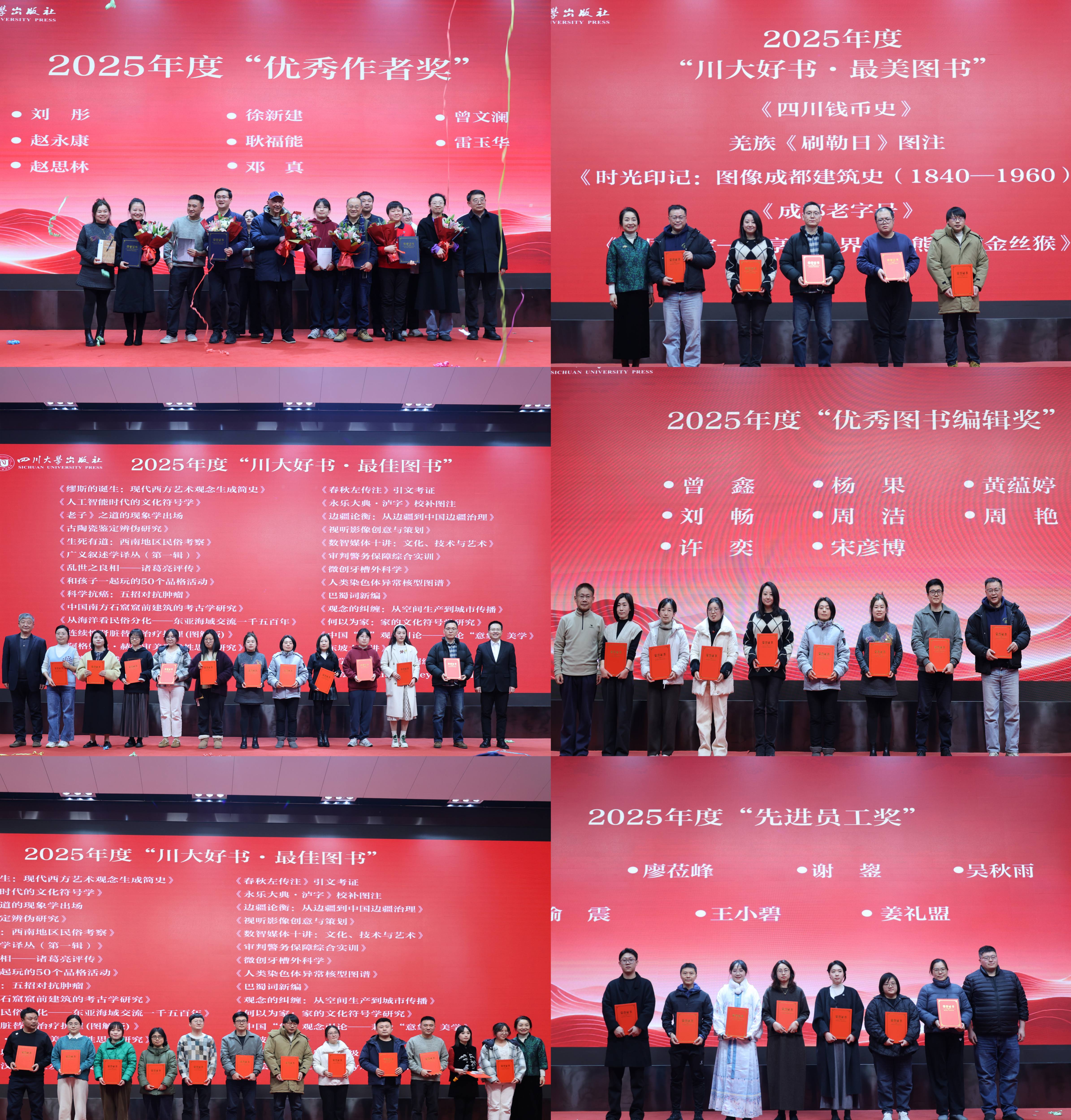 大会第二项议程,由出版社总编张宏辉宣读表彰决定。根据表彰决定,出版社对8位优秀作者、30种“川大好书·最佳图书”、5种“川大好书·最美图书”、8位优秀图书编辑、7位先进员工进行了表彰。他表示,川大出版社将继续与各位优秀作者紧密合作,希望全社全体同志以受到表彰的同志为榜样,牢记出版初心,不辱时代使命,为“十五五”时期川大出版社实现更高质量的发展做出新的更大贡献。