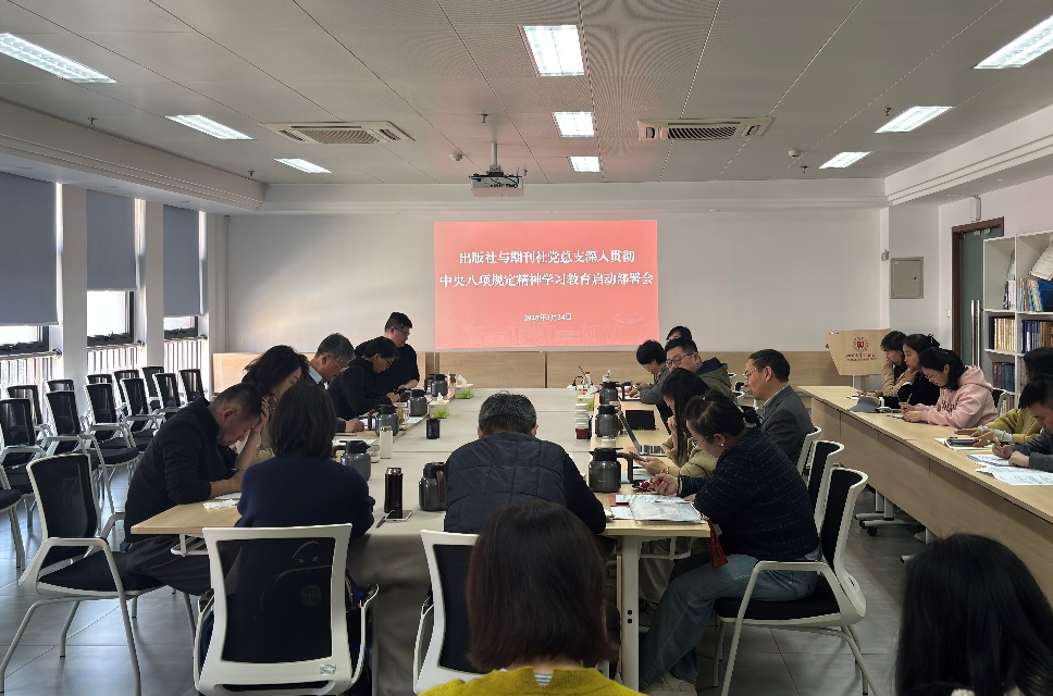 2025年3月24日,出版社与期刊社党总支在双创示范基地513会议室召开深入贯彻中央八项规定精神学习教育启动部署会,出版社与期刊社领导班子、各党支部书记、全体科级干部、各部门主任参加了本次会议。